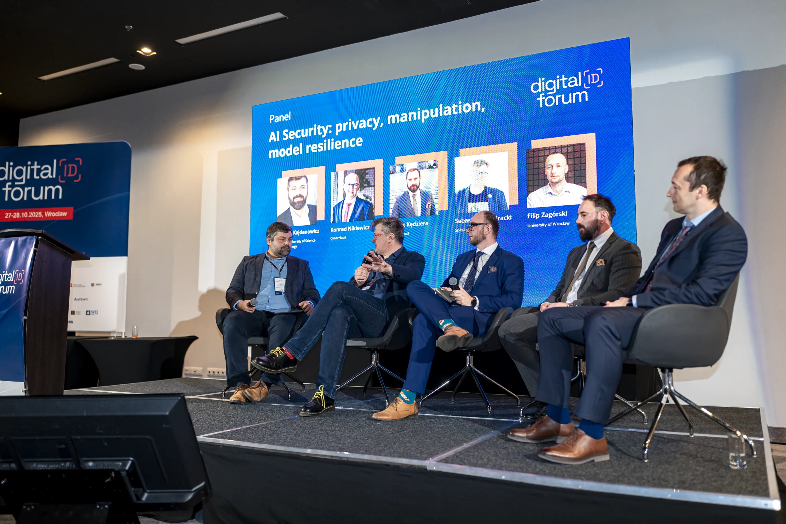 Panel prowadzony przez prof. Tomasza Kajdanowicza (Politechnika Wrocławska) zgromadził Sebastiana Kondrackiego (SpeakLeash/Bielik.AI), Konrada Niklewicza (Cyber Habit), Marka Kędzierę (Mobile Trust) oraz dr. Filipa Zagórskiego (Uniwersytet Wrocławski).